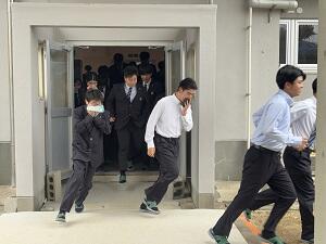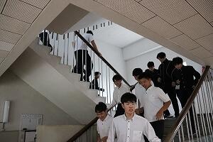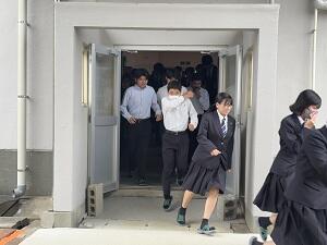 続いて、地震・津波・豪雨災害対策用避難訓練を実施しました。本校3階にある教室や図書館へ避難しました。