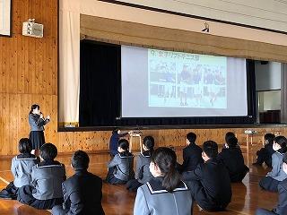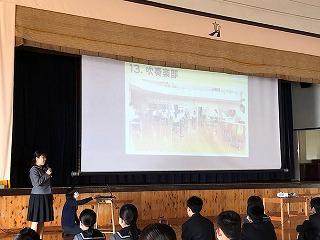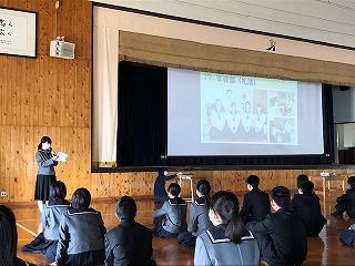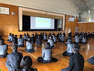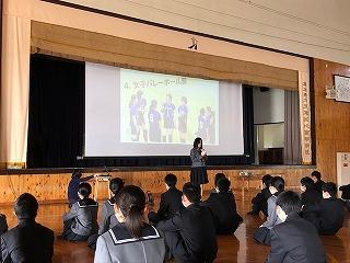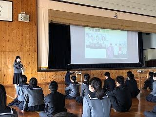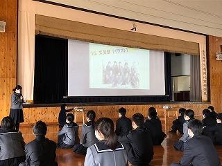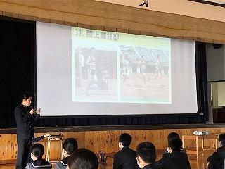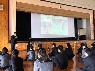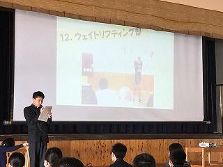 令和2年4月20日(月)臨時休校に伴う生徒登校日【本渡校舎】に、1年生を対象とした部活動紹介が実施された。体育系12部、文化系8団体、その他の活動チーム1団体の計21団体がスクリーンと部長(発表者)によって紹介された。
