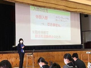 また、最後には入部の仕方と、高校生活をより活気に満ちた充実したものにするために、各自にあった部活動を3年間継続してほしいとの説明があった。