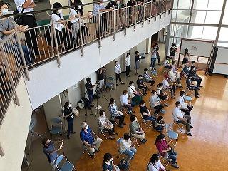 当日は、多目的ホール1階席2階席も埋め尽くし、席を増大しての70名以上が来場しました。マスク着用とアルコール消毒の徹底に御協力いただきまして、ありがとうございました。また、30℃以上の真夏日にかかわらず足をお運びいただき感謝申し上げます。