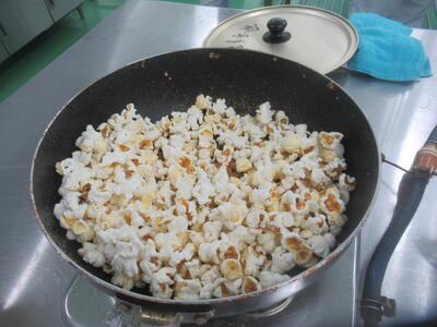 自分たちで栽培して、収穫していたポップコーンの製造を行いました。
