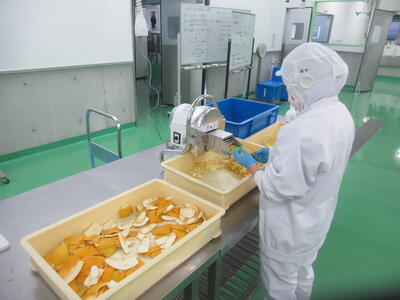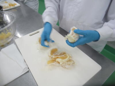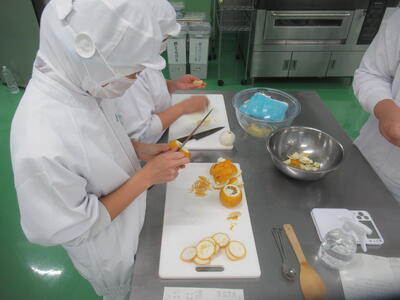 【本渡校舎』食品科学科1、2年生「晩柑下処理実習」
