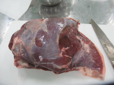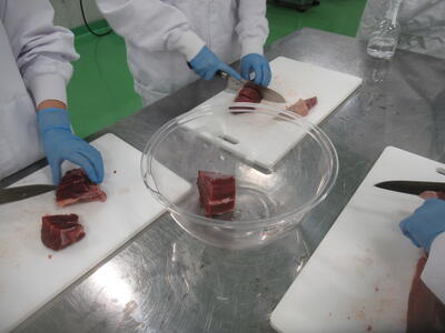 今年度初の実習は3年生のイノシシ肉の下処理となりました。
