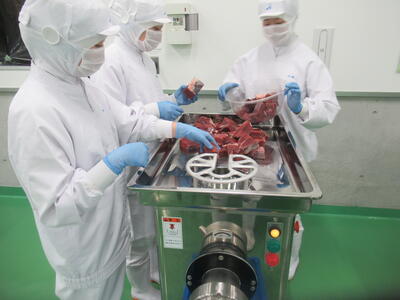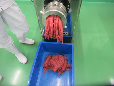 初めての製造でしたが、クラスみんなで協力し、150kgを超える豚もも肉をソーセージに加工できました。