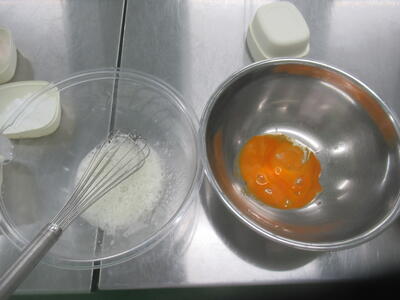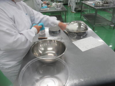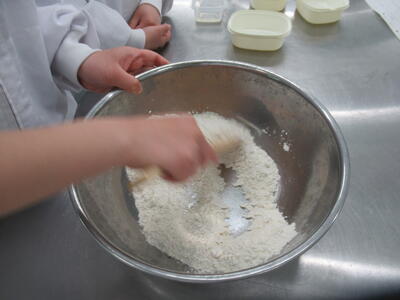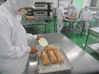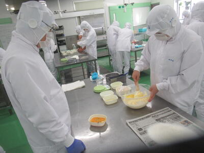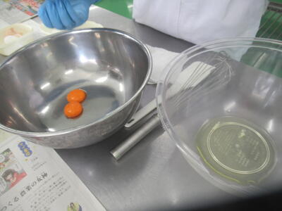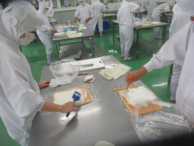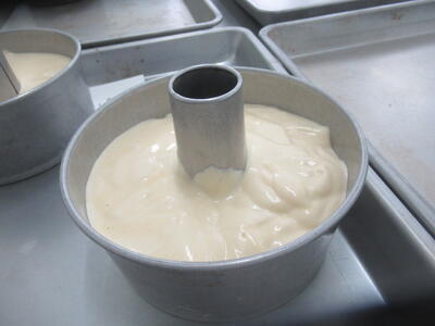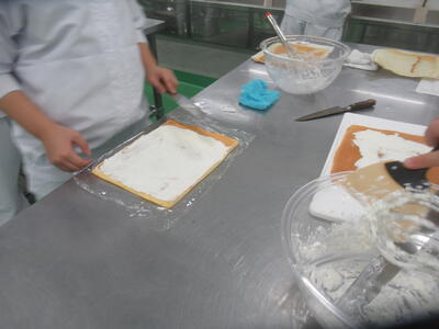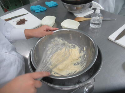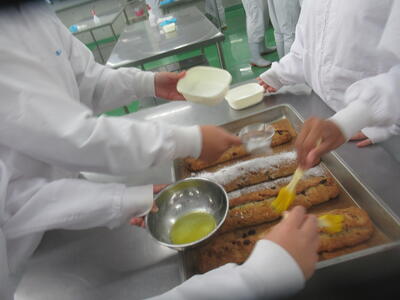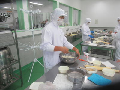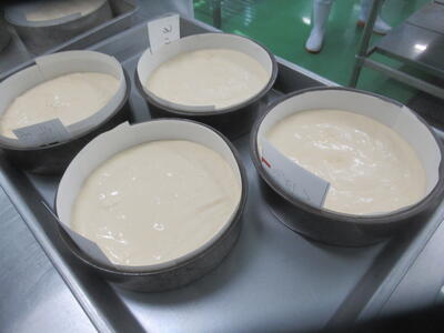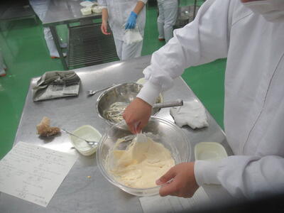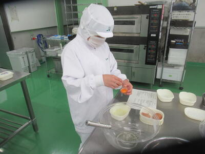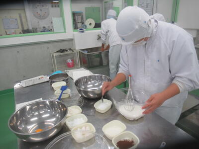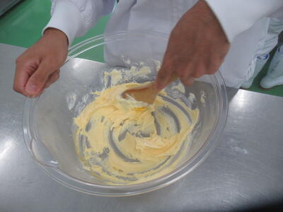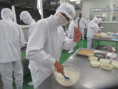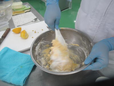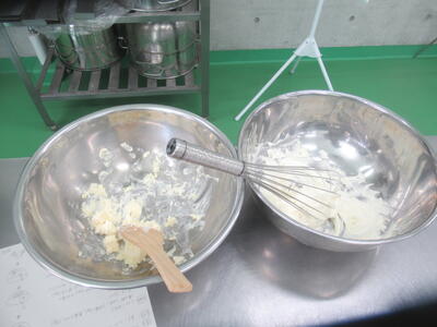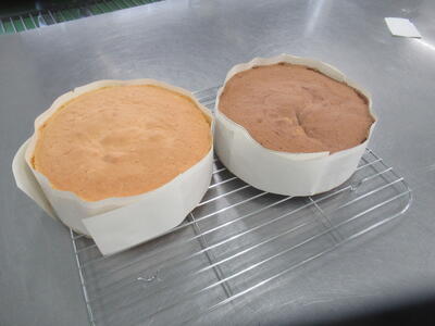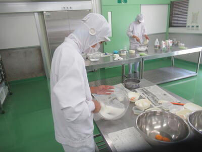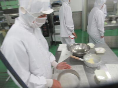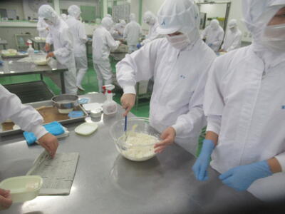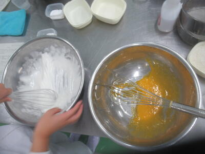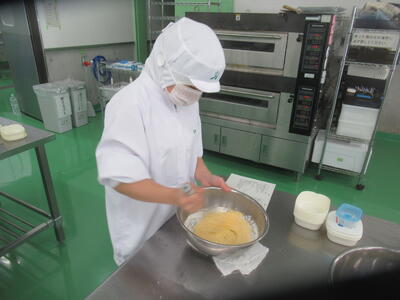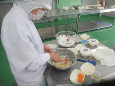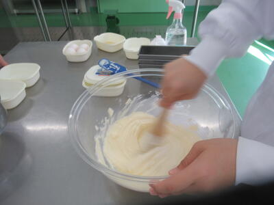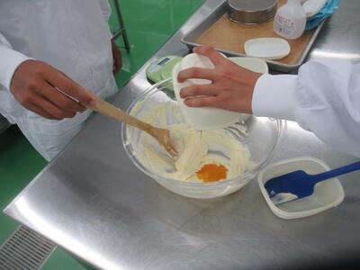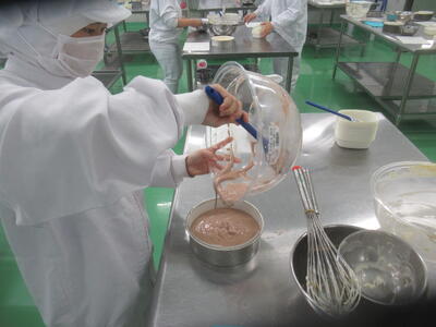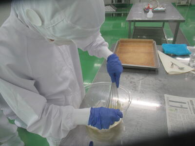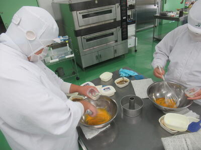 今回は1年生がスポンジケーキ製造に取り組みました。