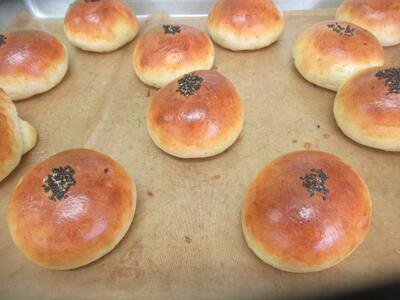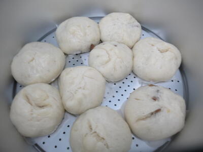 挽肉とたまねぎ、タケノコ、ネギを炒め、味付けを行い、饅頭生地で包み、蒸し上げました!!