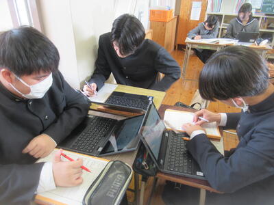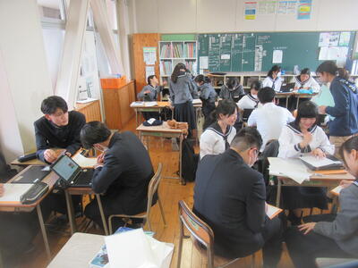 課題研究の授業では各班ごとにテーマを設定し、計画作成に取り組んでいます。