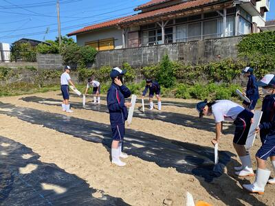 【本渡校舎】食品科学科1年生『トウモロコシの播種と看板設置』