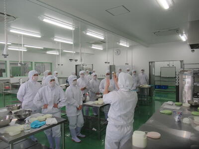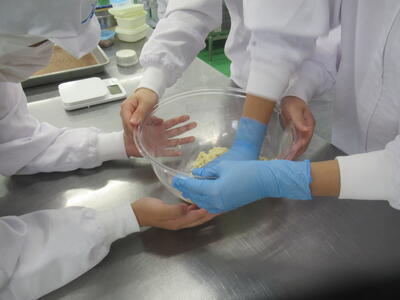 食品科学科では学科説明、酸乳パールの試飲、チョコチップクッキーの製造体験を行いました。