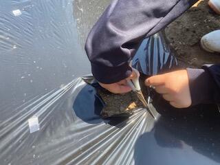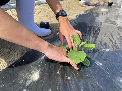 1人1本のナスと自分が栽培したい作物を各自数本準備を行い、植え付けました。