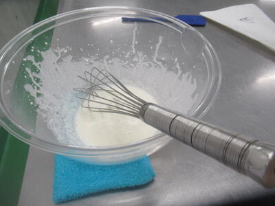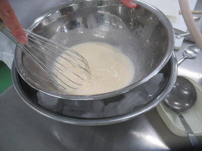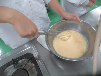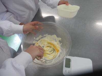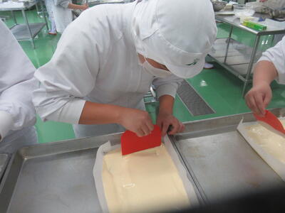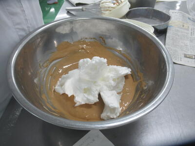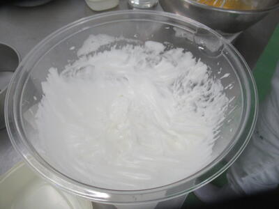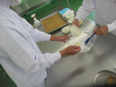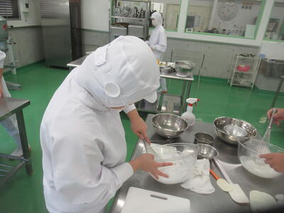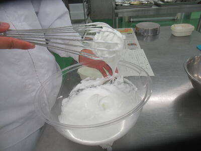 3年生ではメレンゲを使ったケーキ製造を行っています。