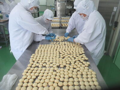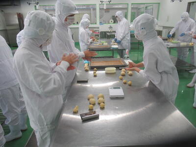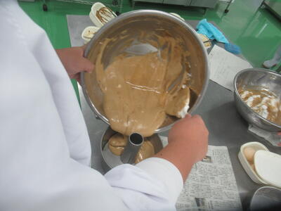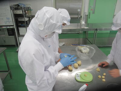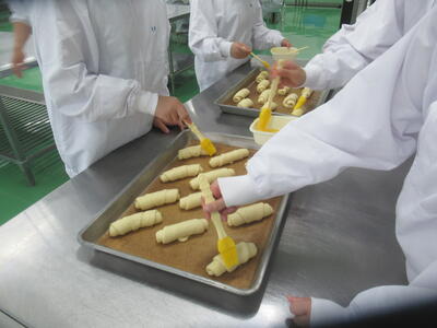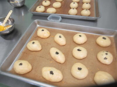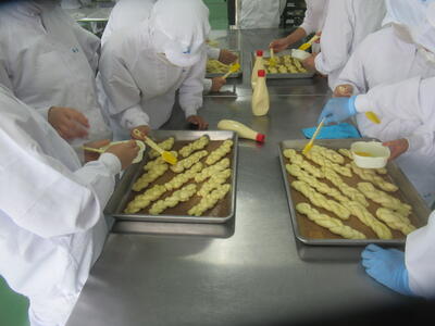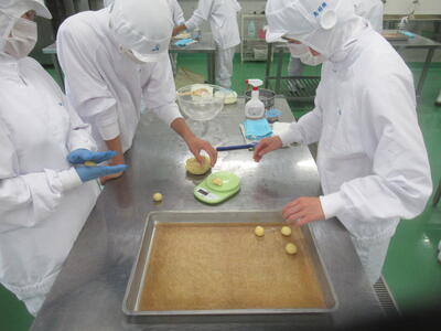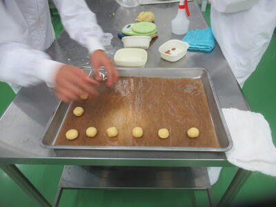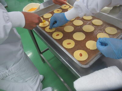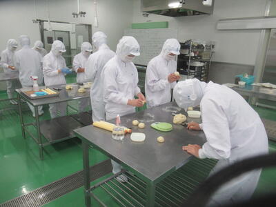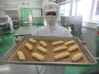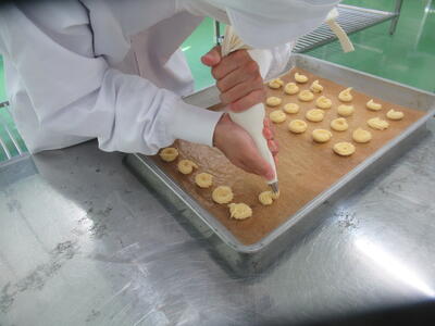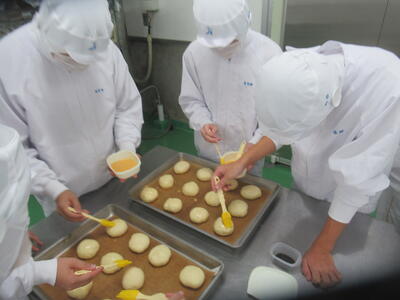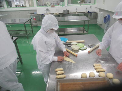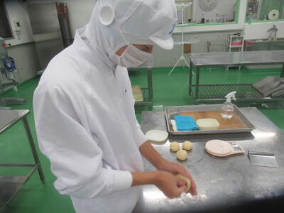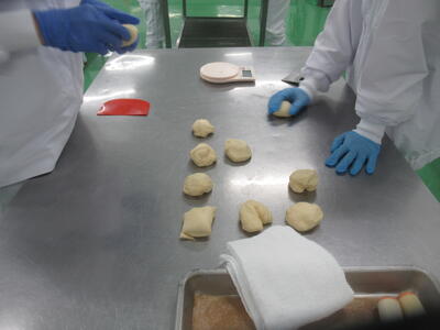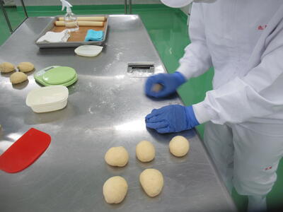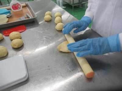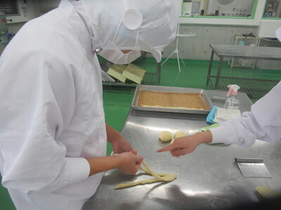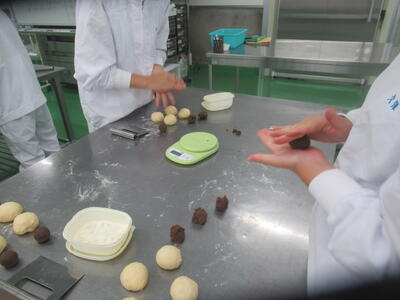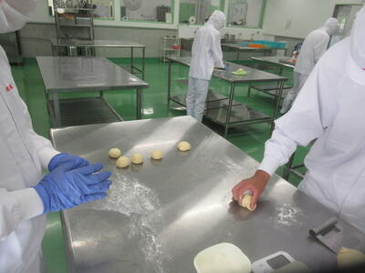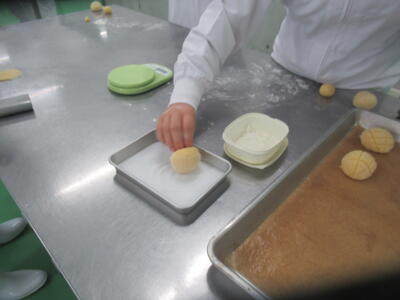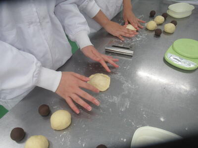 成形の方法やクッキー生地とパン生地を合わせる工程は、あんぱん製造の行程と近いのでスムーズに実習できました。
