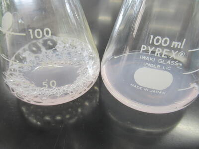 2つの試料ともに紫色に変化したため、アミノ酸が含まれていることがわかりました。