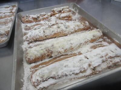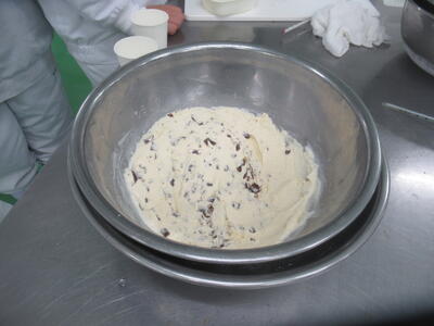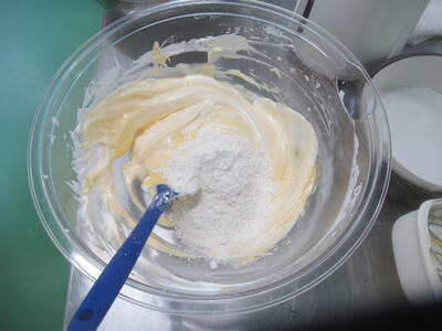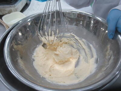 12月にクリスマスケーキ製造を行うので、生地作りの練習を行いました。