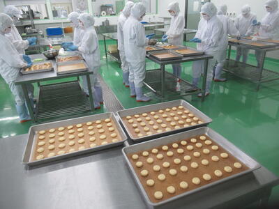 今回の実習では、3人1組で協力しながら、クッキー製造を行うことができました。