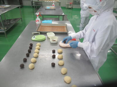上手にあんこを中心に包餡するには、技術が必要で担当の先生が、包餡の実技指導を行う際には、「おぉ~!!」っと声が上がっていました。