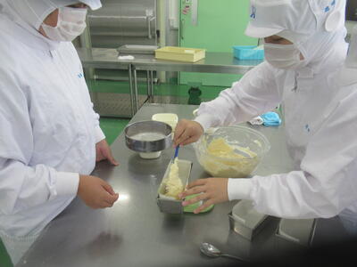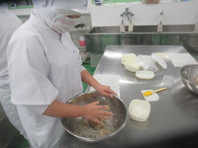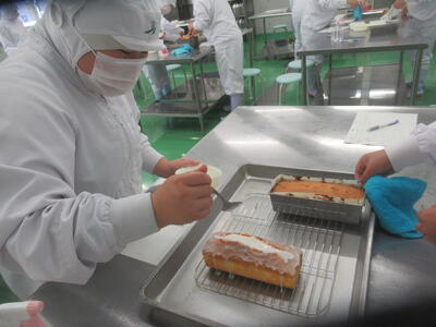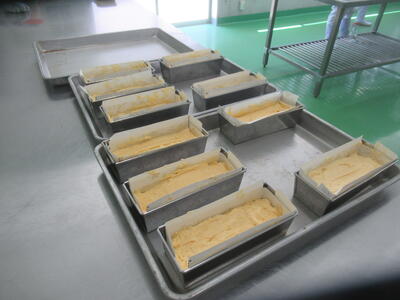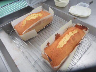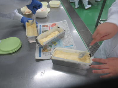 1年生では拓心祭の時に販売を行う、パウンドケーキの製造実習を行いました。