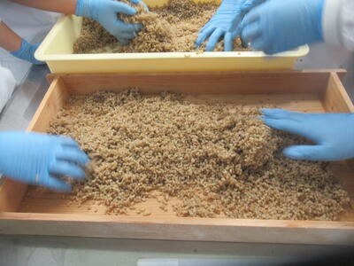 今回は持ち帰り実習ですが、実際の販売品と同じ工程で実習を行いました。