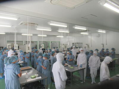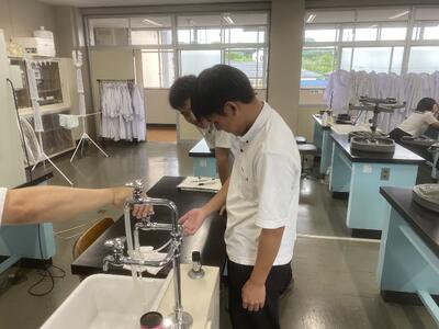 1年生食品科学科では初めて実習服にそでを通し、初めて実習室に入室をしました。