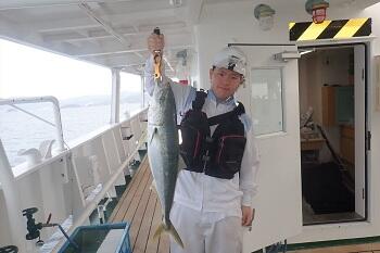 19日(月)も伊王島沖に錨泊し、実習を継続しました。この日は久しぶりに大物の魚が釣れ、3kgを超えるブリを生徒たちが力を合わせて釣り上げました。釣れた魚は刺身や煮付けに調理し、夕食としていただき、海の恵みを実感する機会となりました。