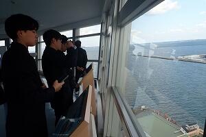 博多ポートタワーへ行き、博多港の歴史や展望台から島の地形を見ました。