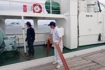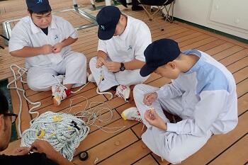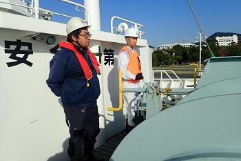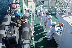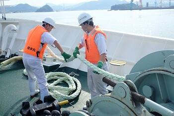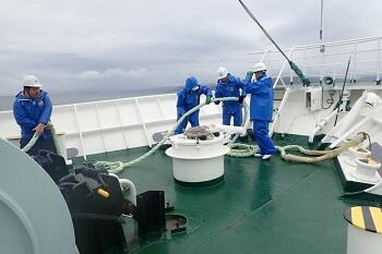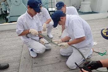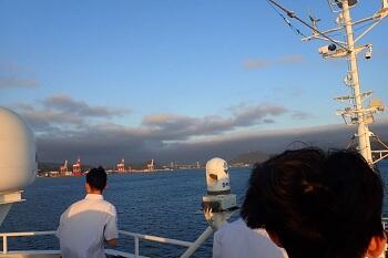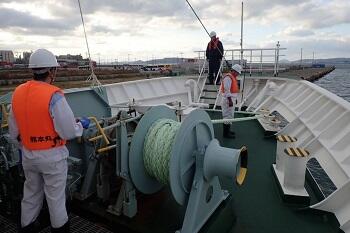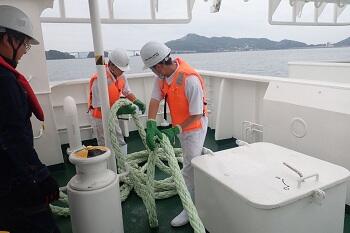 入港作業は、熊本丸の乗組員の方々に教えて頂きながら生徒達が行いました。