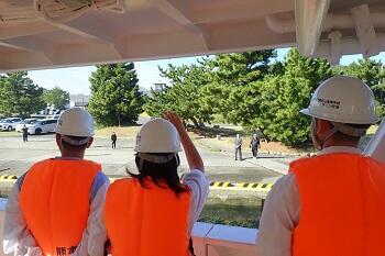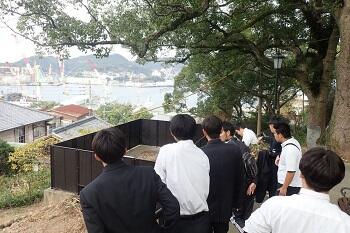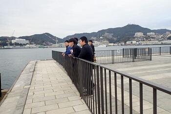 長崎での寄港地活動では、造船所をはじめとした港湾施設を見学しました。周辺には多くの船舶関連企業が立ち並び、歴史ある町並みと相まって非常に壮観で、生徒たちは海事産業の規模の大きさや歴史を肌で感じる貴重な機会となりました。
