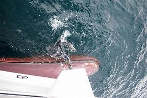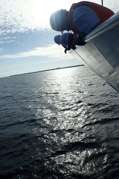 強風・波浪のため飯盛沖に移動しました。久しぶりの時化のため船酔いをしたようですが、すぐに回復しそれぞれの役割を行いました。