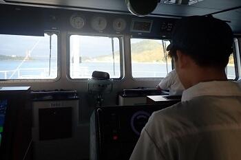 生徒がウィンドラスの全ての操作を行いました。安全のために乗組員が後ろに控えていますが、操作ミスが事故につながるため、一つ一つ確認しながら作業しました。午前9時に長崎港に入港予定です。