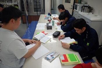 夜には法規の確認テストを行うため、全員がそれに向けて勉強を頑張っていました。