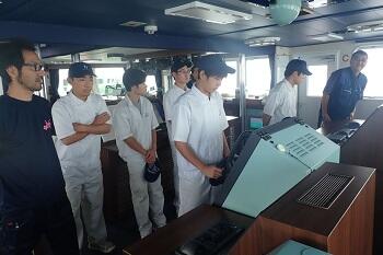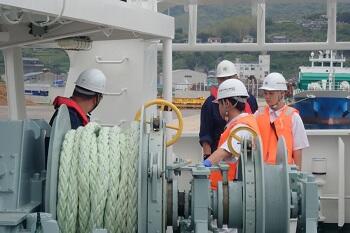 揚投錨の作業の際には生徒達がなれた様子で機械の操作を行っており、就職先でもこの経験を活かしていって