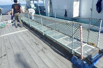 タラップ用の網は、片方が完成しました。1月の航海中にもう一つ作る予定です。