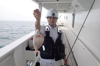 投錨後に釣獲実習を行いましたが、あまり成果は上がりませんでした。