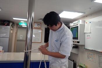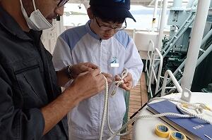 錨泊中の時間も、もちろん貴重な実習の機会です。 さっそく、2つの実習に挑戦しました。