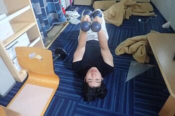 波は穏やかで船酔いなどもなく、生徒達は元気に筋トレなどを行いました。