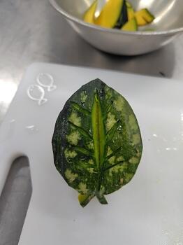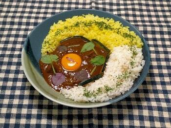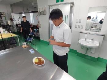 実習では、自分たちで作った「カナガシラのマッサマンカレー」を盛り付け、撮影を行いました。