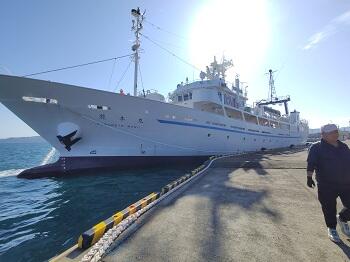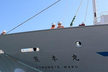 現在、熊本丸は長崎県の五島福江湾に錨泊中です。