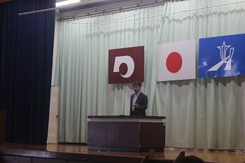 推戴式で鬼塚校長先生は、「選手の皆さんはまず、自分にプレッシャーをかけて自分に負けないようにしてください。そしてSSS&T(攻めて、攻めて、攻めまくれそして楽しめ)の気持ちをもって試合に臨んでください。」と激励の言葉を述べられました。