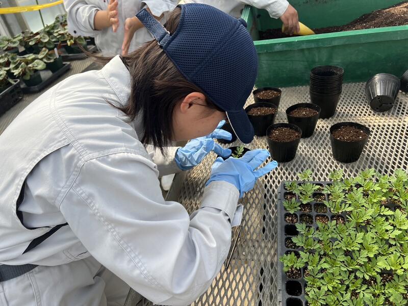 生物生産科2年生の草花の授業は、マリーゴールドの鉢上げをしました