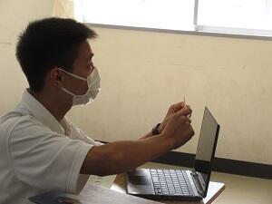 マリン校舎を代表し、鶴田さんが閉会のあいさつをしました。画面に手を振ってお別れです。