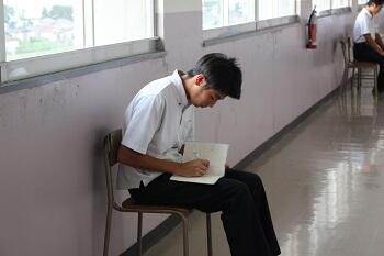 ↑校長先生から、試験に向けての自信度を5段階で聞かれているときの様子です!