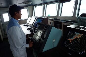 調査も第3レグに入り、最初に比べて海図の記入など作業スピードが速くなりました。立派な船舶職員になるべく日々真剣に実習に取り組んでいます!