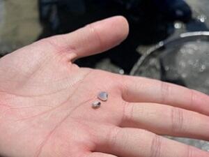 砂地を掘ってみると、たくさんのアサリの赤ちゃんを発見することができ、八代海が豊かな海であることを体感しました。しかし、一方で、アサリを保護する被覆網は、チヌ類によってボロボロに食い破られており、今後の対策の必要性を強く感じました。