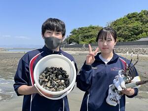 今回はチヌプロジェクト第1段として、八代海における現状を把握することを目的に、プロジェクトメンバーであるマリン校舎食品系の生徒と熊本県立大学の大学生が、アサリ漁場での食害状況の視察を行いました。