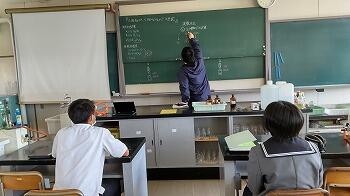 慣れない実験機器の操作に戸惑いながらも真剣な眼差しで実験に取り組みました。その結果、前回自分たちで作った試薬は正確に作れていることが分かり、生徒たちは安心した表情でした。