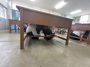 10月5日に熊本県で行われる「熊本シェイクアウト訓練」に合わせ、本校でもシェイクアウト訓練を実施しました。緊急地震速報を想定し、3つの安全確保行動を取りました。一人一人が日頃から避難場所や避難経路の確認を心がけてもらいたいです。