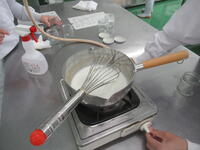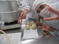 2学期初の実習は3年生でした。今回はプリンの製造を行いました。