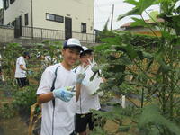 授業中に雨が降ってくることもありましたが、みんなで夏野菜の管理を行いました。