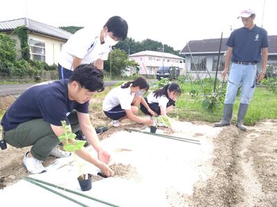 農場の川北先生にご指導いただき、無事に定植することができました。