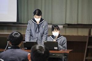3年生各学科・コースの代表5組が地元の課題や地域振興や各学科の特色を生かした研究成果や今後の展望について発表しました。3年生は今後も探求心を持ち物事に取り組み、1・2年生は自分たちの研究に活かしていきましょう。
